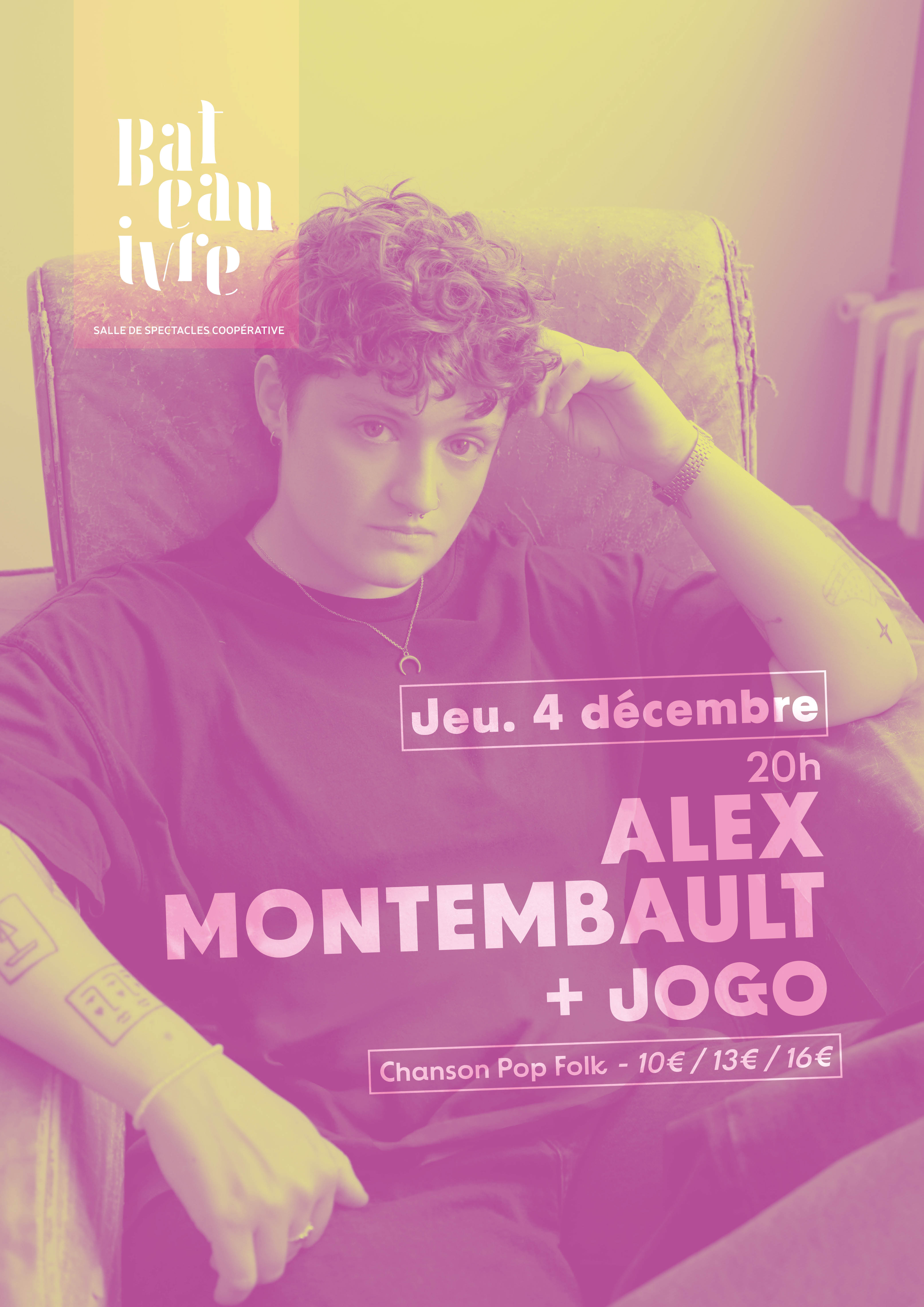 Alex Montembault blends the sweetness of a singular voice with sensitive, chiseled melodies. Trained in jazz, lulled by French chanson and passionate about 70s rock-prog, he composes intimate, luminous songs. Revealed in Starmania, where he played Marie-Jeanne, he is back with a personal repertoire that is both modest and moving. Between guitar, piano and chosen words, Alex sings of identity, family, silences? with emotion, without detours. To be discovered live, for the first time as a solo artist.