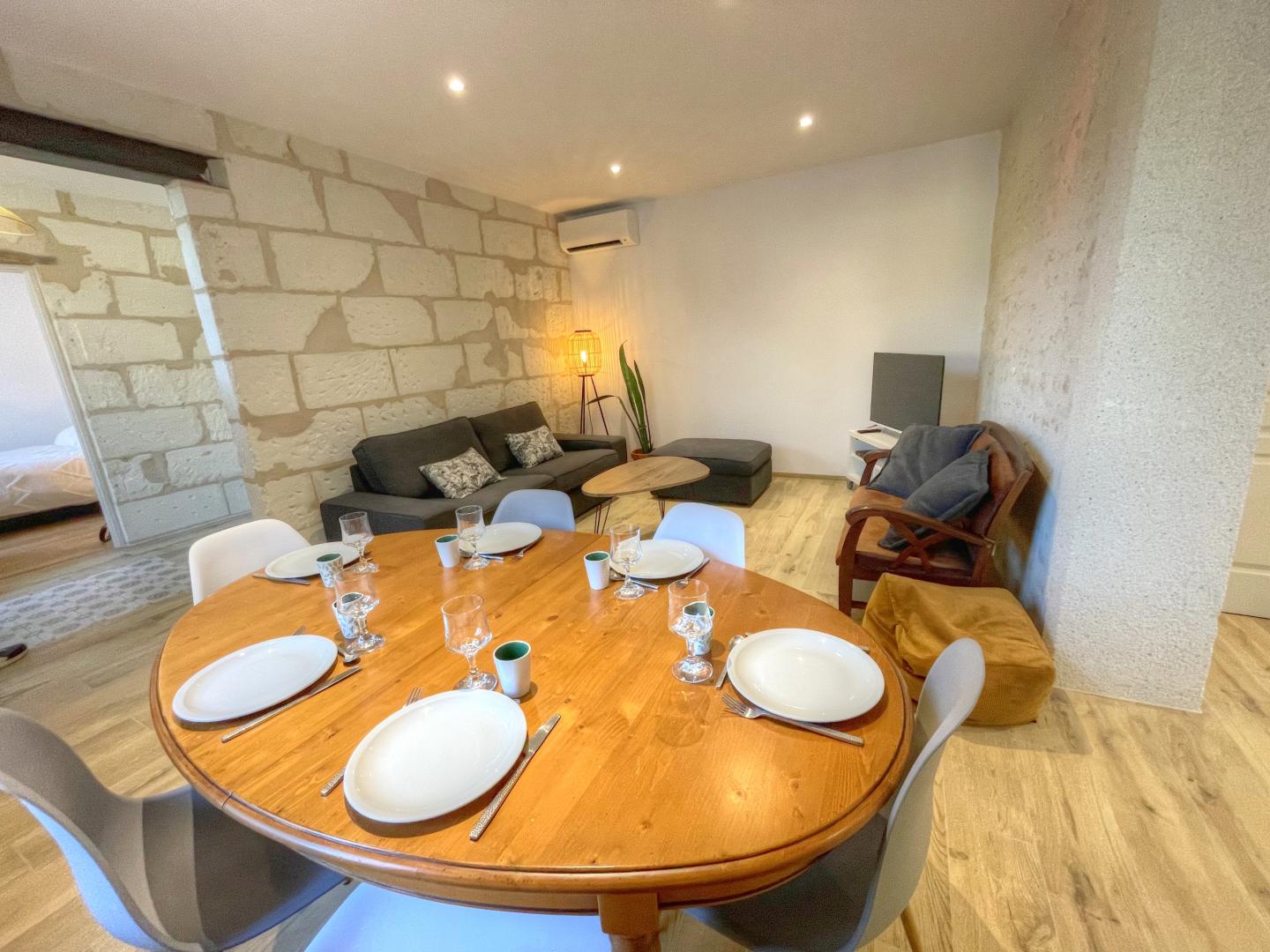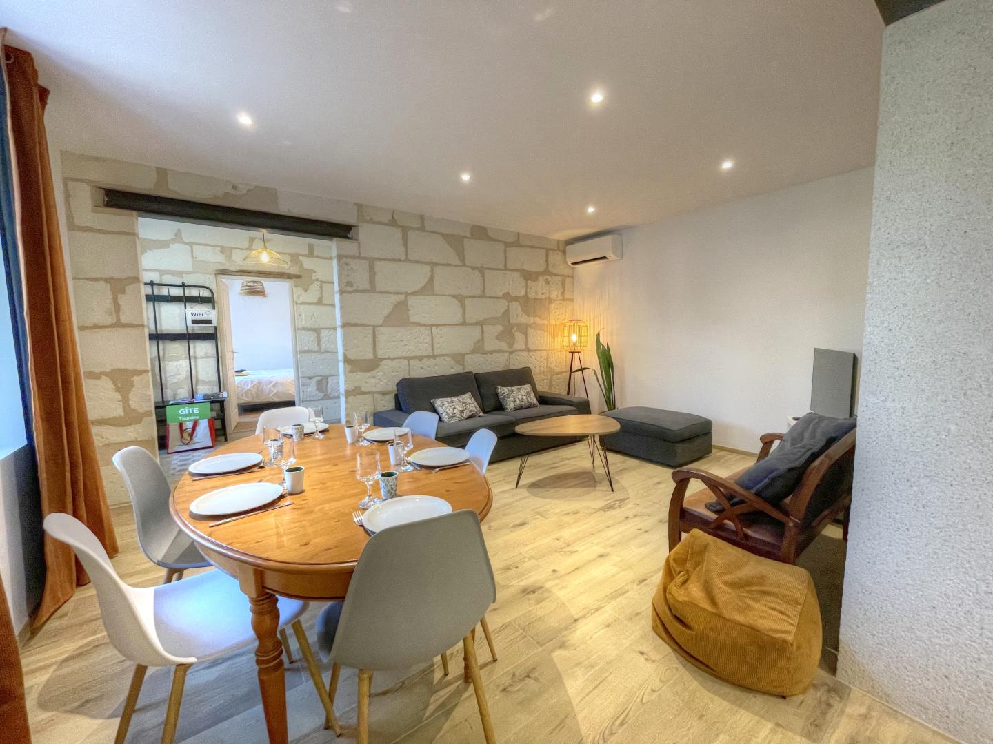 This charming, lively village on the banks of the Cher enjoys an incredible location, close to some of the world's greatest Renaissance châteaux, the Beauval Zooparc and the thousand and one riches of the Touraine region. Your gîte is the symbol of Léonie and Yann's determination to perpetuate a family heritage, a beautifully restored typical tufa stone house. Their aim is to offer you a comfortable, subtly decorated place, combining old stone with contemporary decor. The family suite on the first floor, the two cocooning bedrooms upstairs and the 2 shower rooms will provide you with all the well-being you need for a successful stay. The terrace and vast courtyard will transform your vacation or weekend into a unique experience to share with family or friends. You'll be surrounded by the m