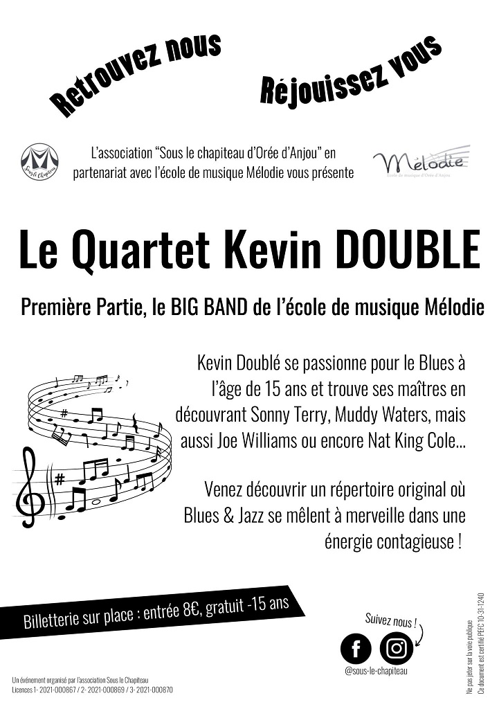 An evening of jazz, blues and swing. With the BIG BAND from the Mélodie music school, followed by the Kévin DOUBLE Quartet.