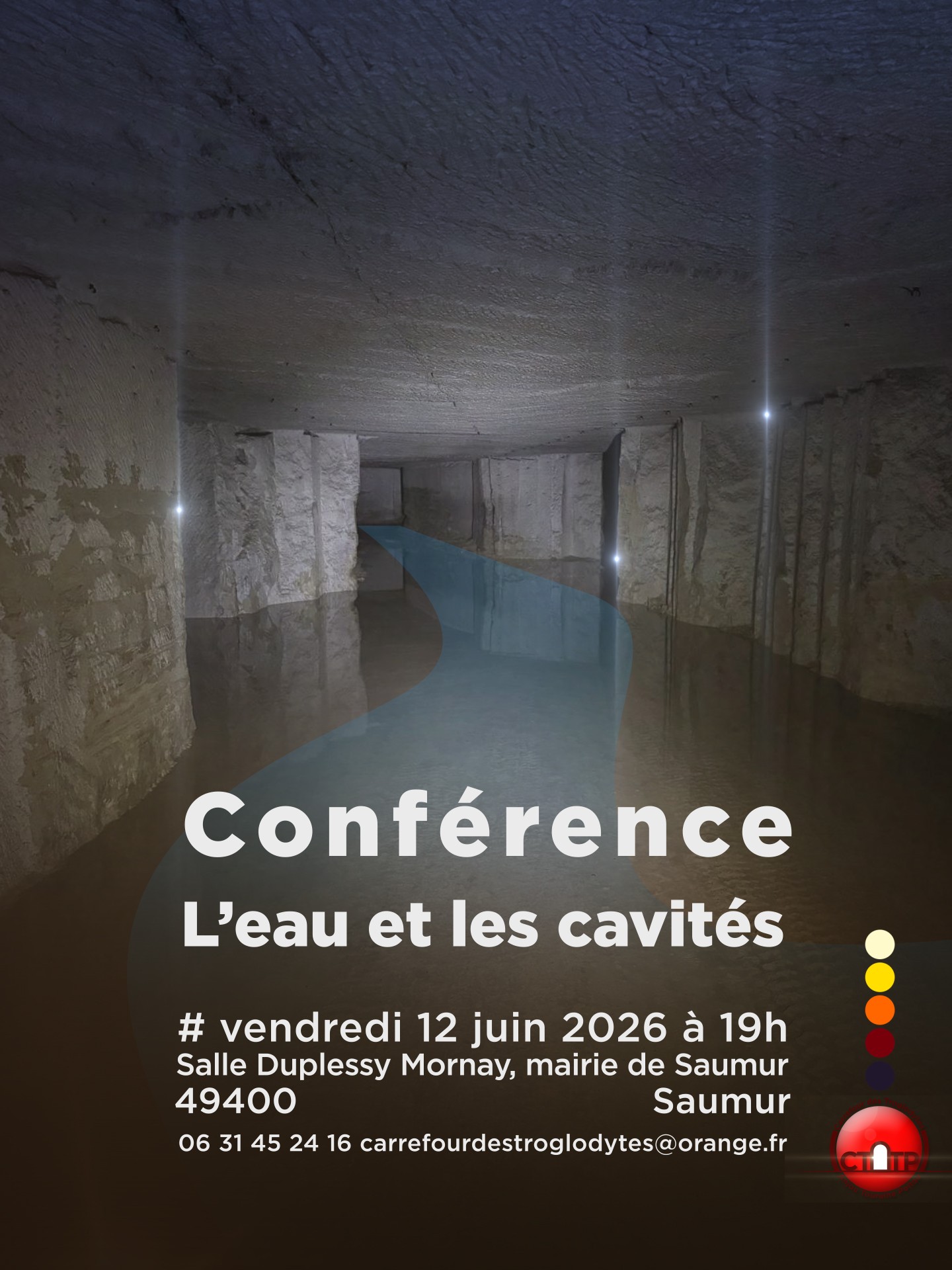 Breadcrumb Home Fêtes et manifestations Conférence – la relation subtile entre les cavités et l’eau Useful informations Prices Opening times Services Transports location_onLocate photo_cameraPhotos Useful informations Prices Opening times Services Transports Locate location_on Conférence – la relation subtile entre les cavités et l’eau Place de la République 49400 SAUMUR smartphone Show number smartphone 06 31 45 24 16 mail_outline View the mail mail_outline carrefourdestroglodytes@orange.fr Period (s) Start End Opening day Closing day 12/06/2026 - 12/06/202619:00--- Join by public transport