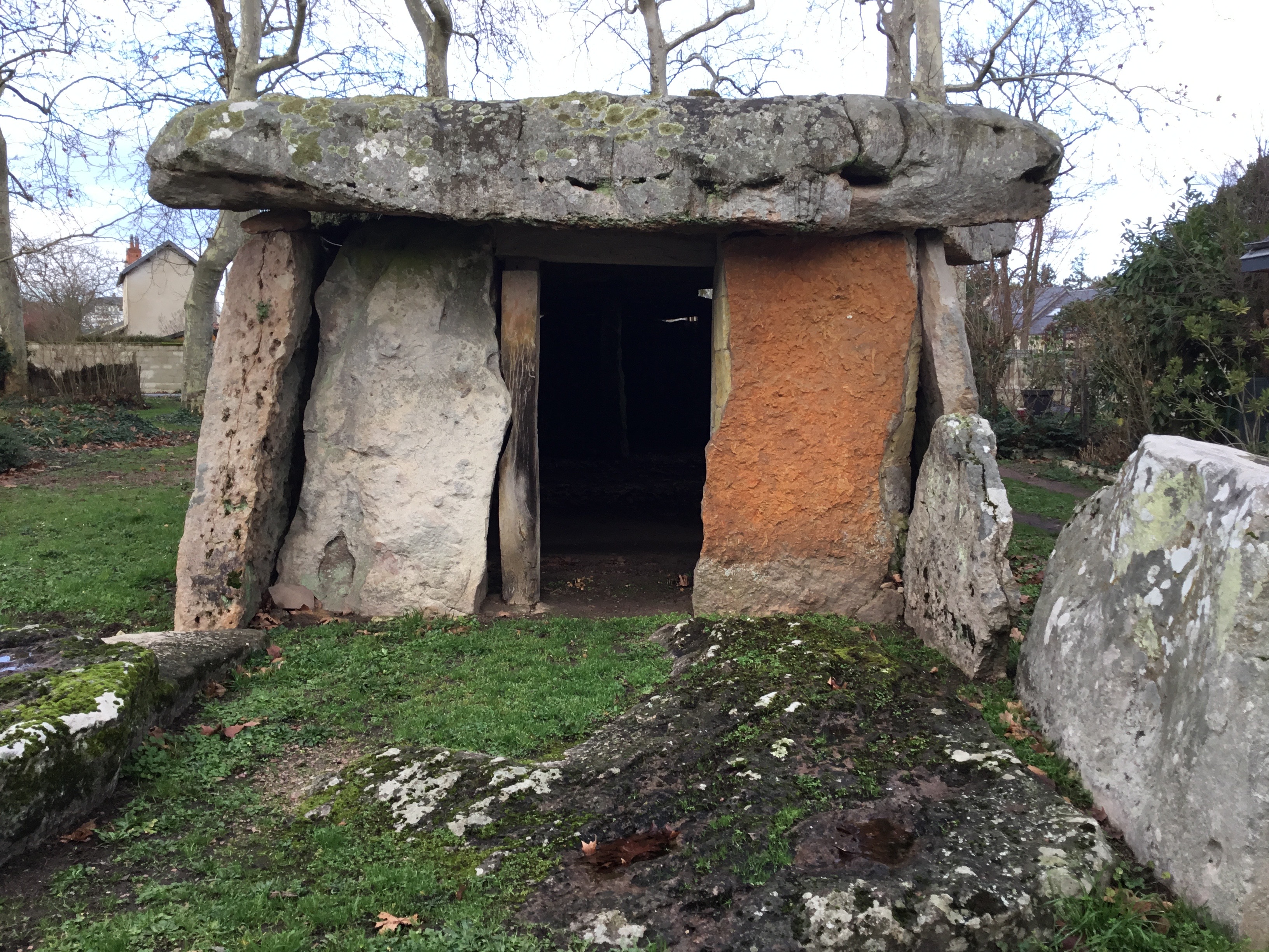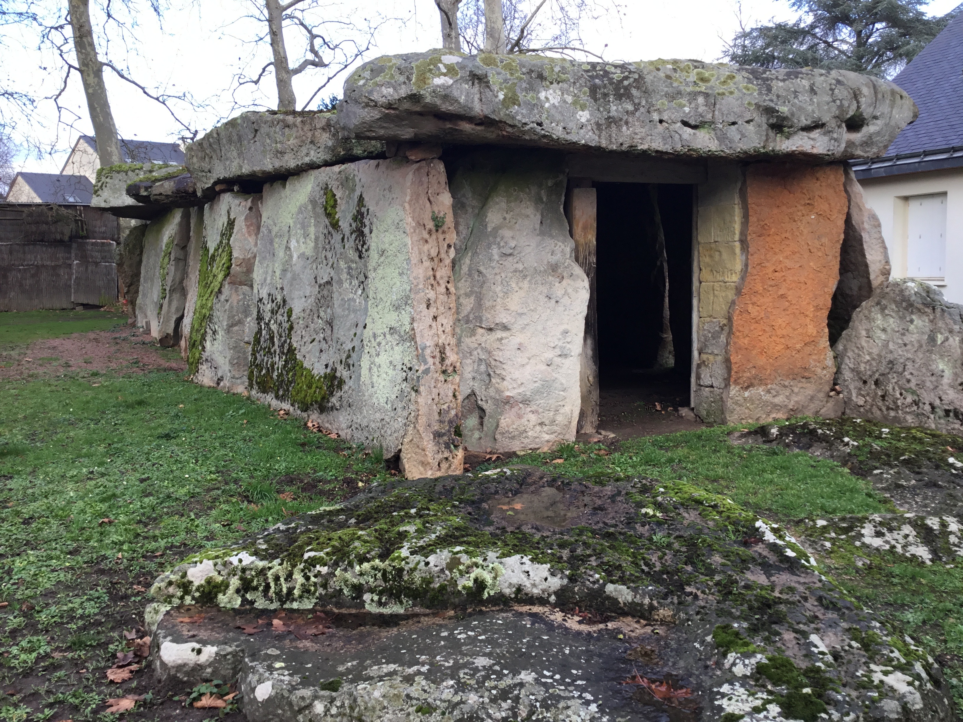 The dolmen at Bagneux are of the Angevin type, consisting of a chamber preceded by a portico. The 18-metre-long burial chamber is still intact, and the regularity with which the huge sandstone blocks are laid is surprising.Spoken languages :French