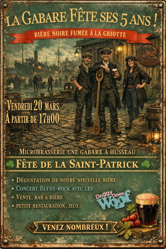 Breadcrumb Home Fêtes et manifestations Fête de la Saint-Patrick – Une Gabare à Husseau Useful informations Prices Opening times Services Transports location_onLocate photo_cameraPhotos Useful informations Prices Opening times Services Transports Locate location_on Fête de la Saint-Patrick – Une Gabare à Husseau 4 Chemin des Rocheroux 37270 MONTLOUIS-SUR-LOIRE mail_outline View the mail mail_outline unegabareahusseau@gmail.com search Show link search https://www.unegabareahusseau.fr/ Period (s) Morning Afternoon Opening day Closing day 20/03/2026 - 20/03/202617:0022:00-- Join by public transport