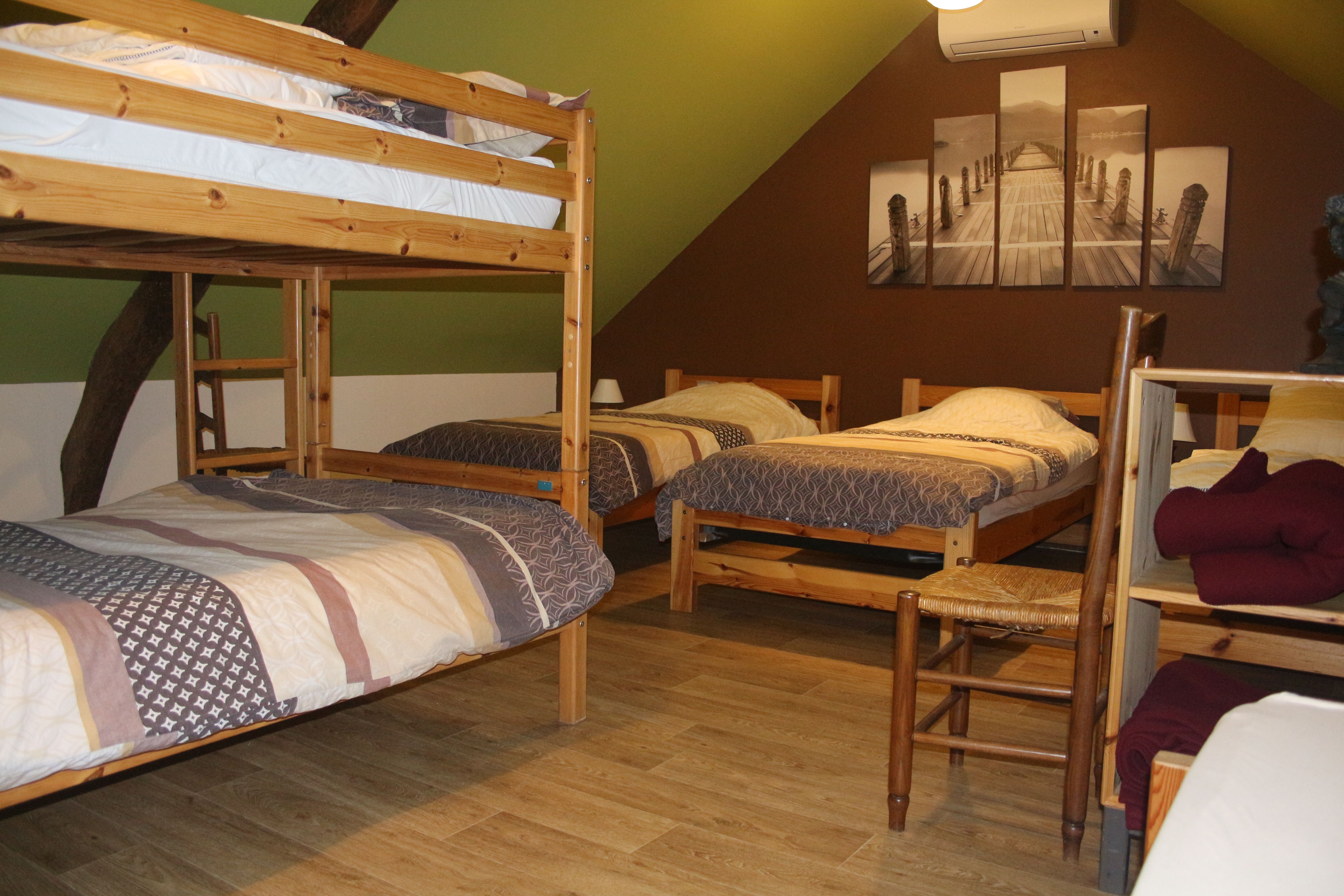 After a long day of hiking, cycling or exploring, take a break in our gîte, ideally designed for your comfort and relaxation. Located in a peaceful setting, this gîte offers spacious, friendly accommodation perfectly suited to groups, families or stopover travellers. Book your room or dormitory bed now from €32 per night/person.