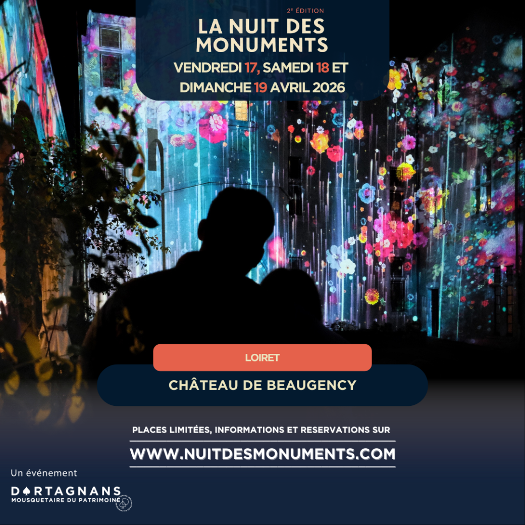 The Château de Beaugency reveals all its secrets at night? With La nuit des monuments de Beaugency, set off to discover all the mysteries hidden within the almost thousand-year-old walls of the Château. Stroll through the Château, explore the Rêve chromatique de nuit exhibition, and discover the inner courtyard facades transformed by the spotlight. A unique moment to marvel at with friends or family. The beauty of the hanging garden and the diffusion of several mappings are the promise of a wonderful end to the evening?