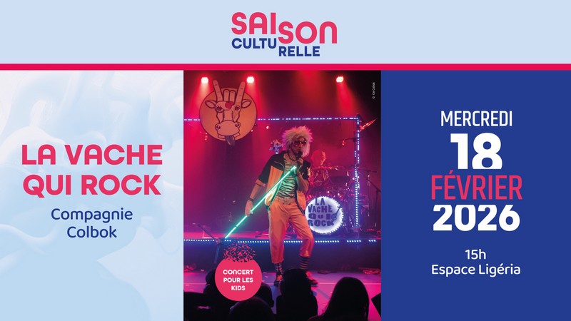 Breadcrumb Home Fêtes et manifestations La vache qui rock – saison culturelle de Montlouis Useful informations Prices Opening times Services Transports location_onLocate photo_cameraPhotos Useful informations Prices Opening times Services Transports Locate location_on La vache qui rock – saison culturelle de Montlouis 9 Rue de la Croix Blanche Espace Ligéria 37270 MONTLOUIS-SUR-LOIRE location_on Espace Ligéria smartphone Show number smartphone 02 47 45 85 10 smartphone Show number smartphone 02 47 45 85 97 search Show link search https://www.ville-montlouis-loire.fr search Show link search https://boutique.tourisme-montlouis-vouvray.fr/billetterie-evenements/saison-culturelle-montlouis-sur-loire Period (s) Morning Afternoon Opening day Closing day 18/02/2026 - 18/02/202615:00--- Family event - for children category Join by public transport