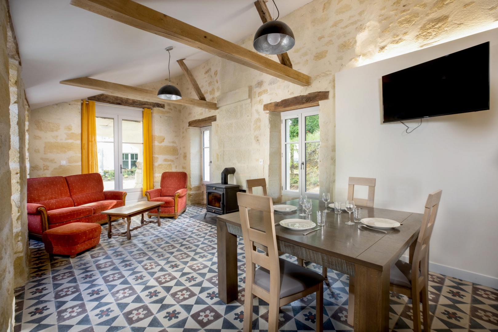 The dwelling is located in the heart of the wine area and yet so close to the centre of the magnificent medieval town of Chinon (another 7-person gite close by). You will benefit from an exceptional view of the Royal Fortress, a historic landmark in France, and of the valley. The grounds will allow you to enjoy the joys of the outdoors and the tranquillity of the place. In this location in Rabelais country where gastronomy, wine and culture go hand in hand, you will enjoy the proximity of the Loire Valley châteaux among others (Azay-le-Rideau, Le Rivau, Rigny-Ussé, Saumur) and also the Royal Abbey of Fontevraud and the Cardinal’s town of Richelieu. The estate’s organic wine is a must to try!Description:Self-contained accommodation, Own garden, Patio set, Patio balcony