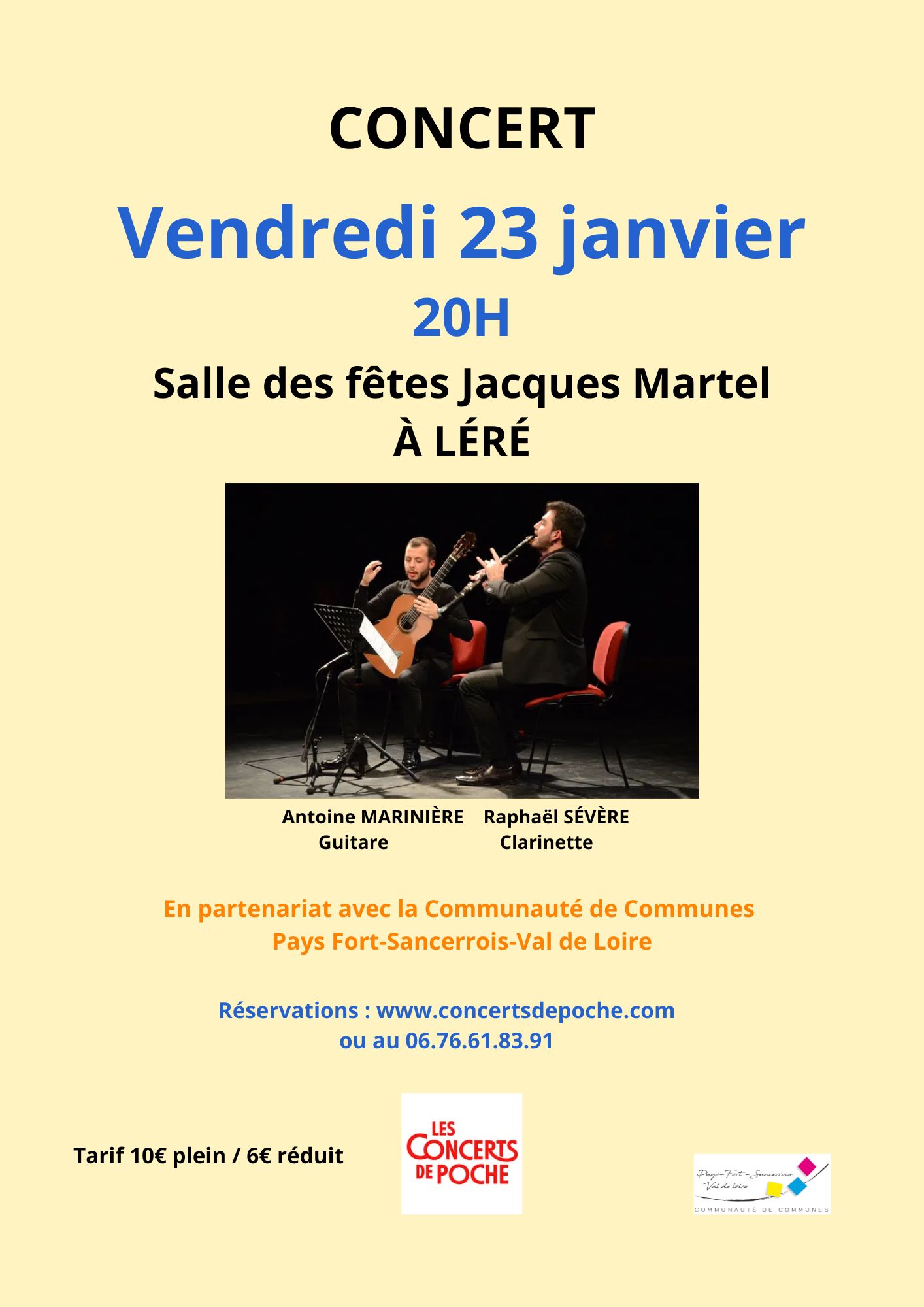 Raphaël SÉVÈRE, clarinet Antoine MORINIÈRE, guitar, two stars of chamber music and incomparable soloists, are also great explorers! Together, they have chosen to invite us on a musical journey with Latin American and even Spanish accents. Raphaël Sévère is a great composer. His perfect knowledge of each of the richnesses of all his clarinets leads him to deliver new colorful and lively creations. Let yourself be carried away by the warm, round sounds of this original duo, and join in the dance!