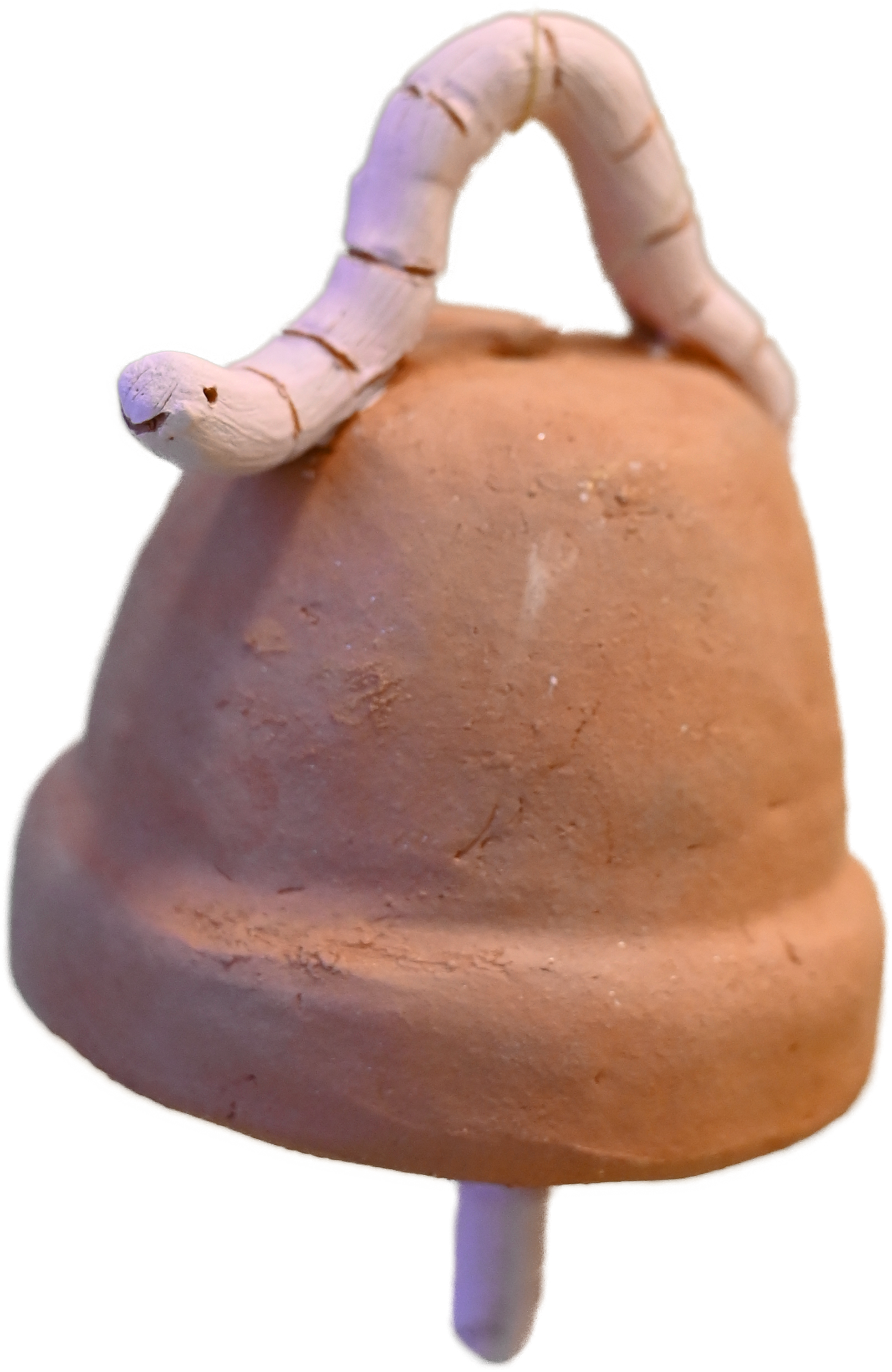 Model a bell adorned with an earthworm, using the pellet pot technique.