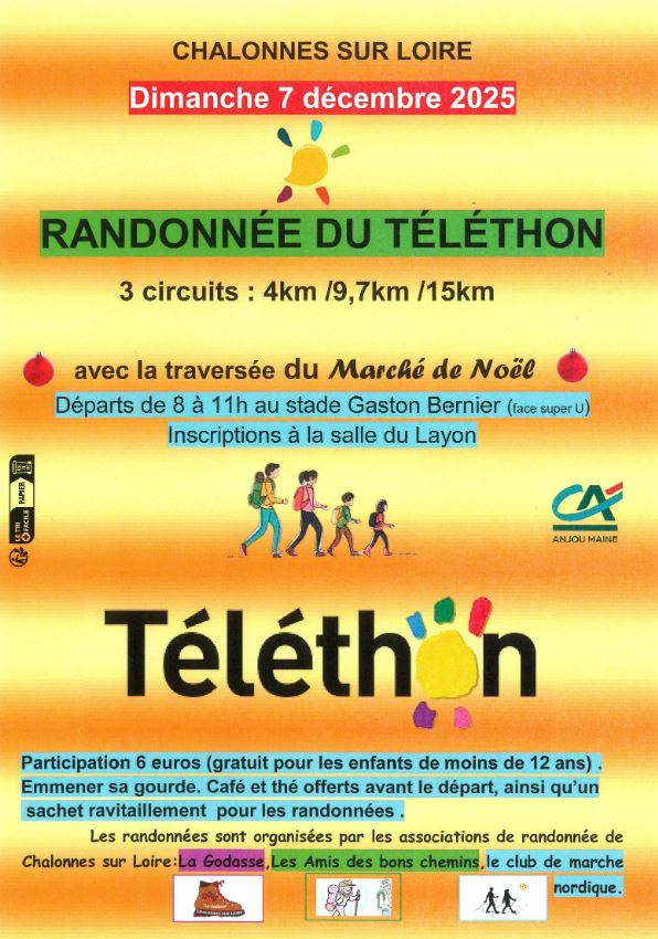 Event organised by the Chalonnes sur Loire hiking associations: La Godasse, les Amis des bons chemins, le club de marche nordique.
